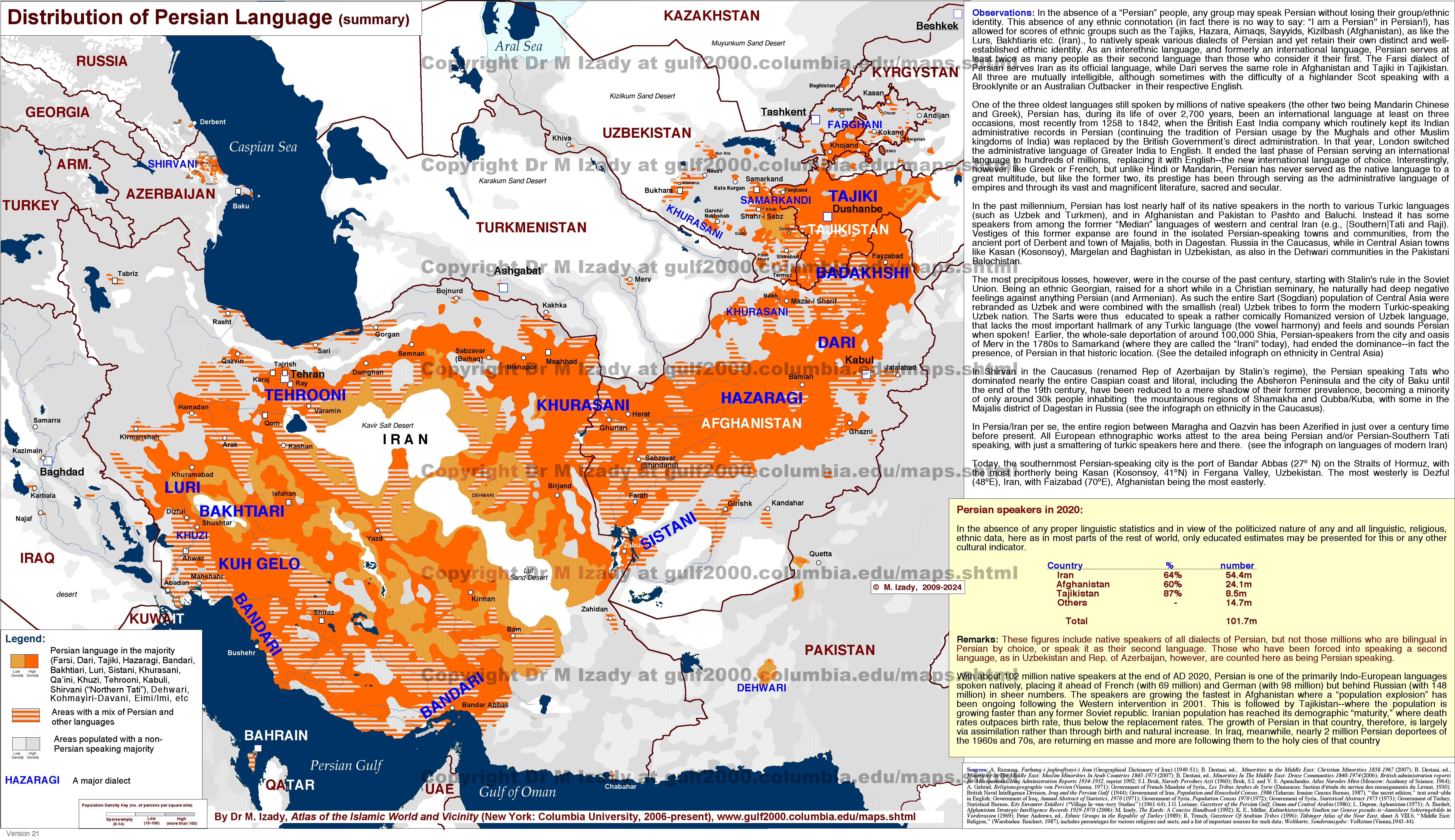 Persian Language Distribution (summary)
