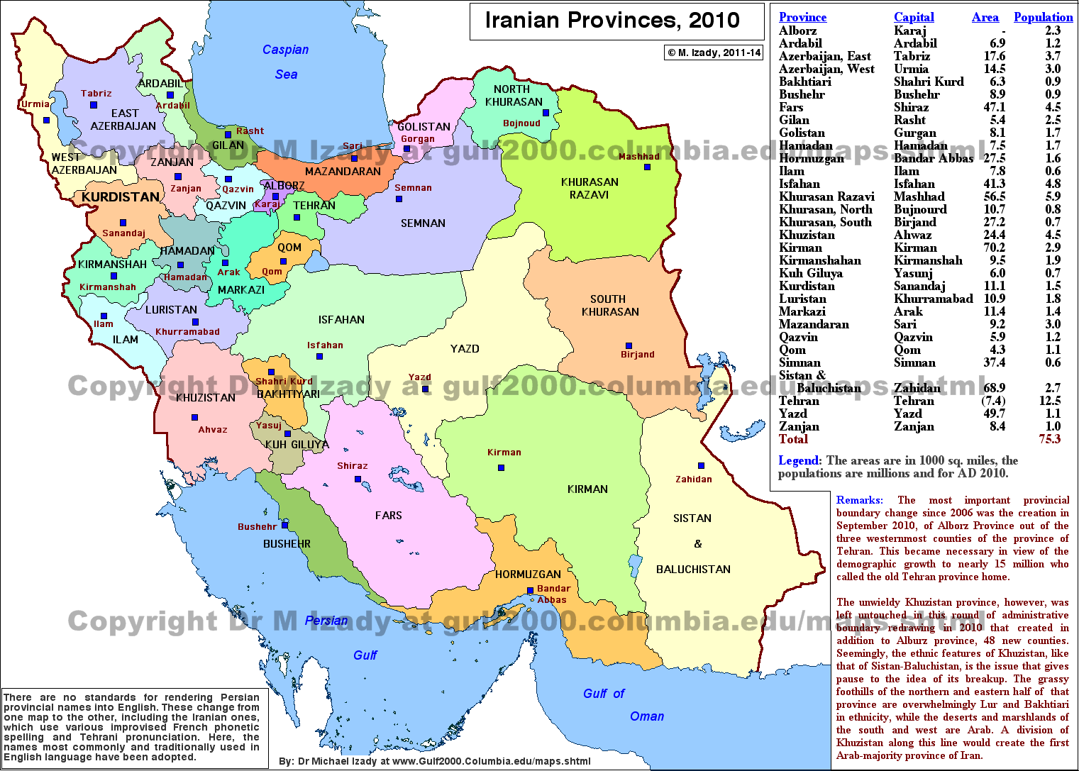Provinces of Iran, 2010