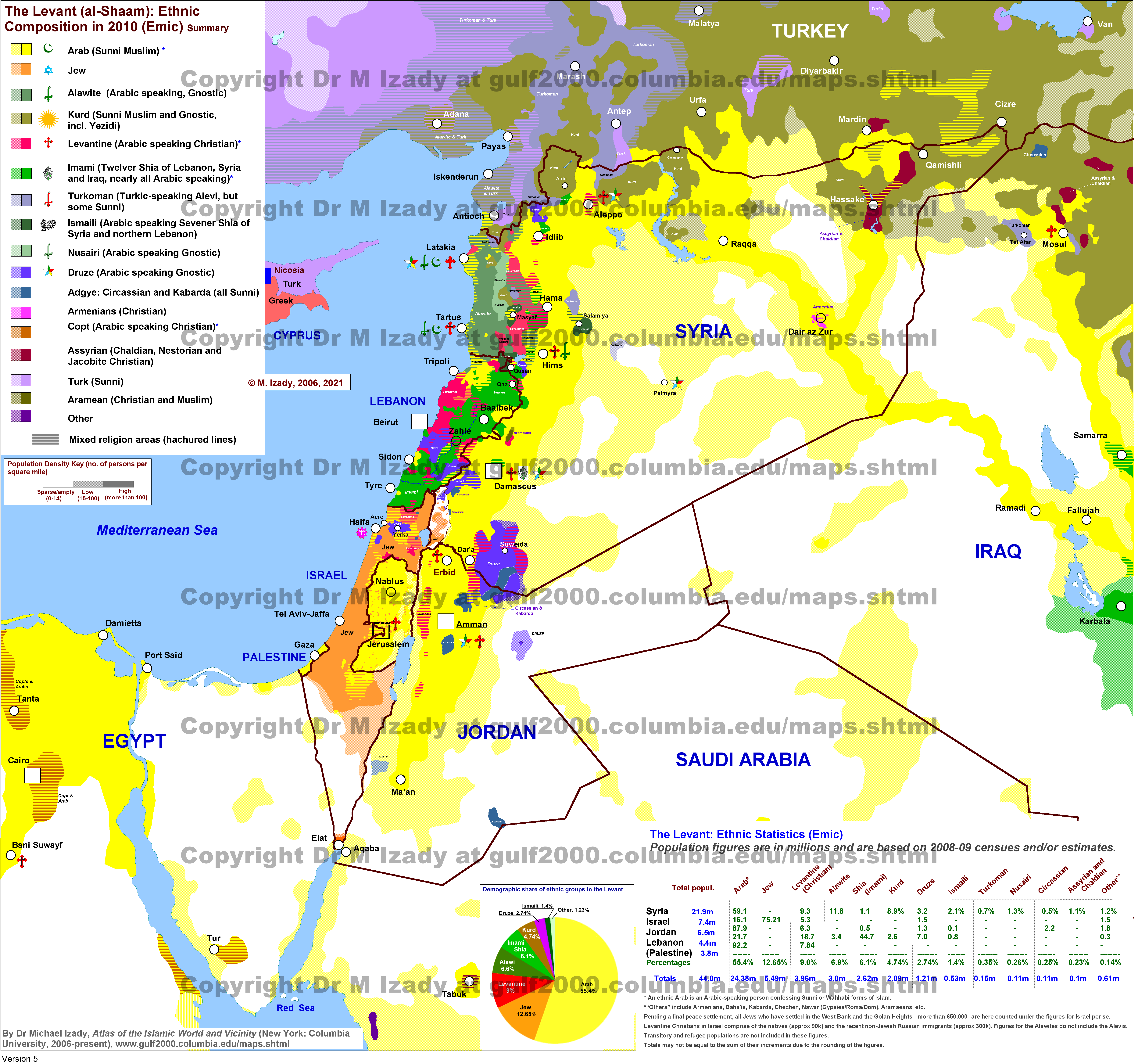 Levant (al-Shaam) - Syria, Lebanon, Israel, Palestine and Jordan Ethnic Composition in 2010 (summary)