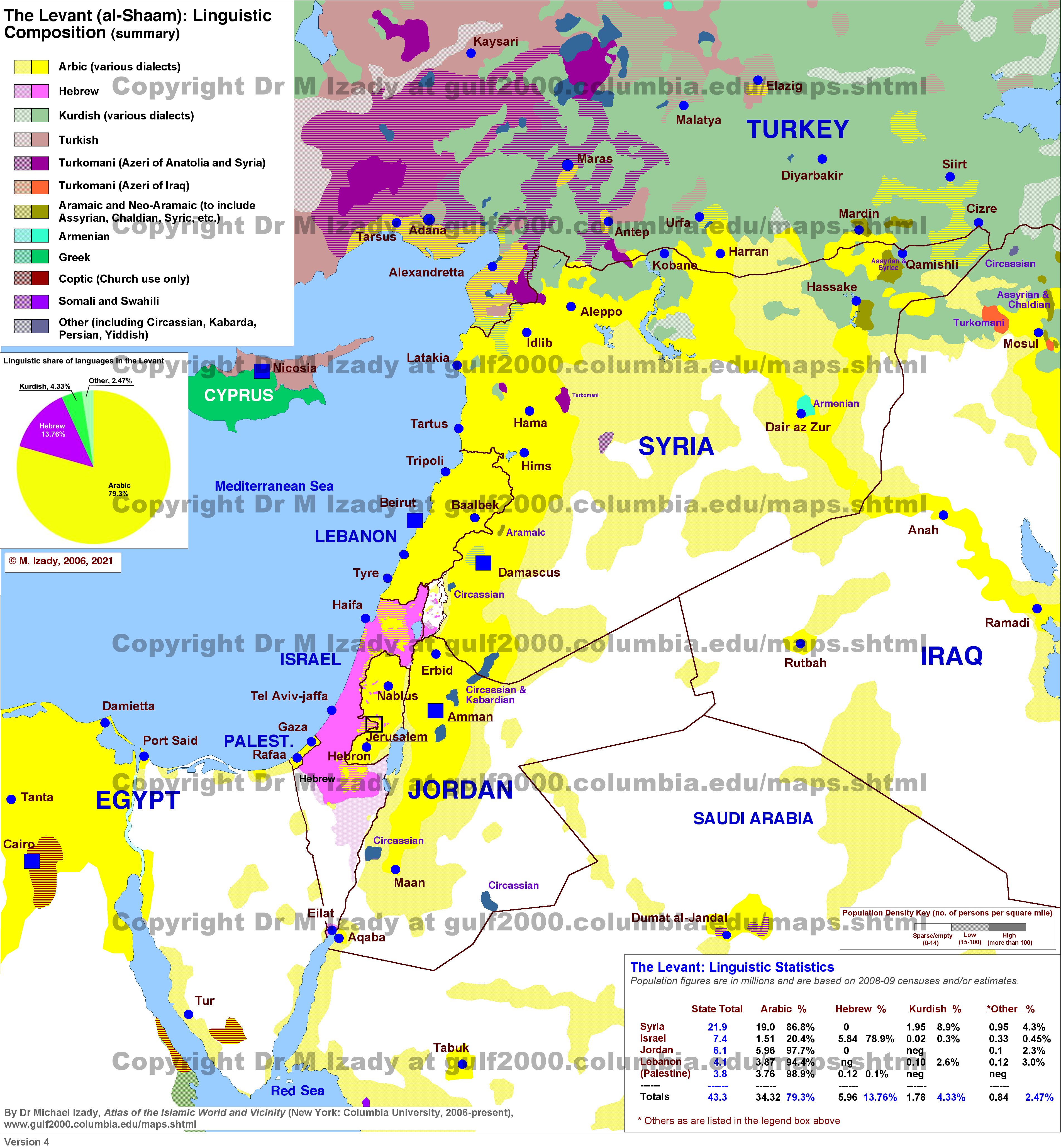 Levant (al-Shaam) - Syria, Lebanon, Israel, Palestine and Jordan Linguistic Composition in 2010 (summary)
