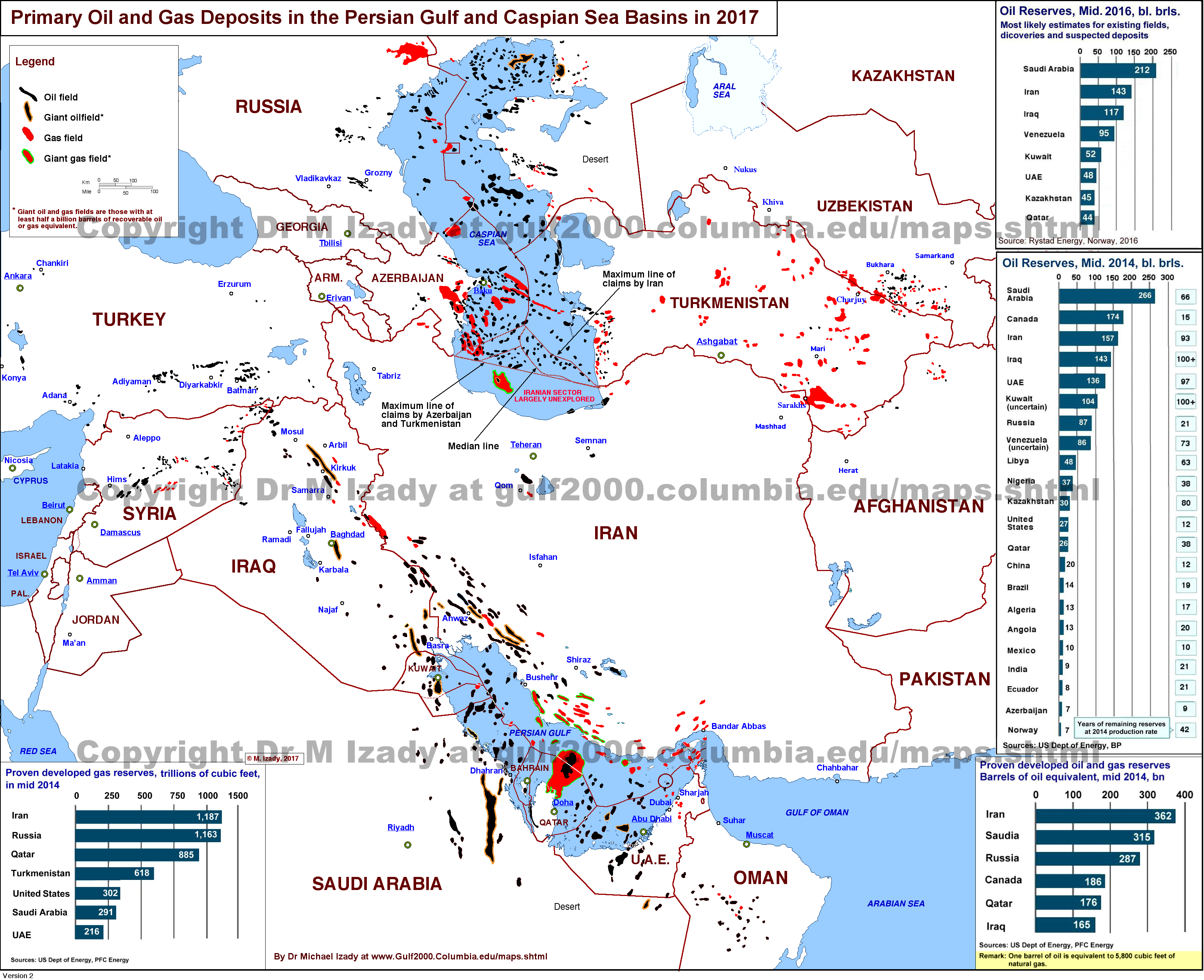 Oil and Gas Deposits in the Persian Gulf and the Caspian Sea Basins in 2017 | Atlas of the Islamic World